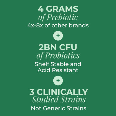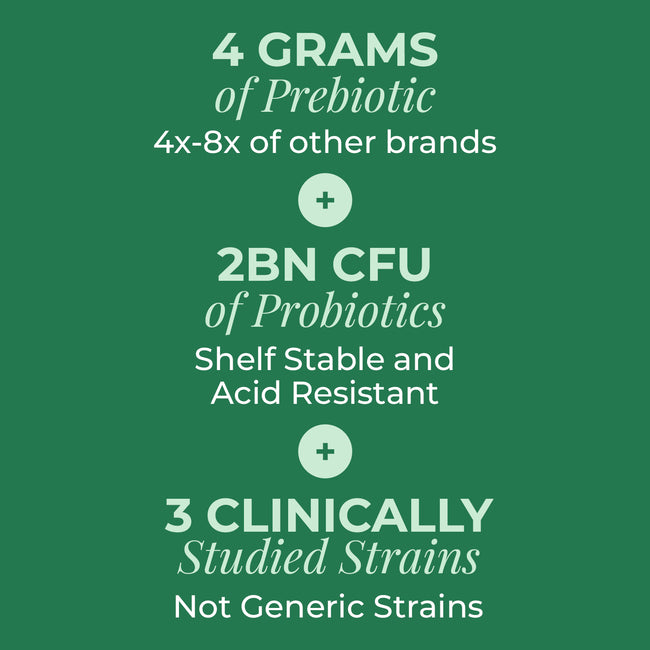 Our triple-strength probiotic blend includes three strains of good bacteria that are fully genome sequenced and clinically proven to support digestive health, promote gut balance and relieve bloating and irritable bowel syndrome. One of these in specific — Bacillus Coagulans Unique IS2 — has been validated in multiple gold-standard studies for its ability to relieve constipation and IBS symptoms.