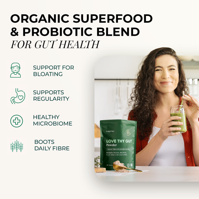 Paying attention to your gut and aiding its smooth functioning is crucial no matter what your age or phase of life — keeping your gut ticking along perfectly keeps your mind and body (and bowels) in peak rhythm. Love Thy Gut is designed with nutrient-dense ingredients that support healthy digestion and nourish your body from the inside out. Improved digestion leads to enhanced mental clarity, immunity, skin health, weight management, energy levels and even your mood! Our superfood blend is a holistic solution that is effective and easy to use, and blends well with smoothies, fruit bowls, oats, yogurt or just water.